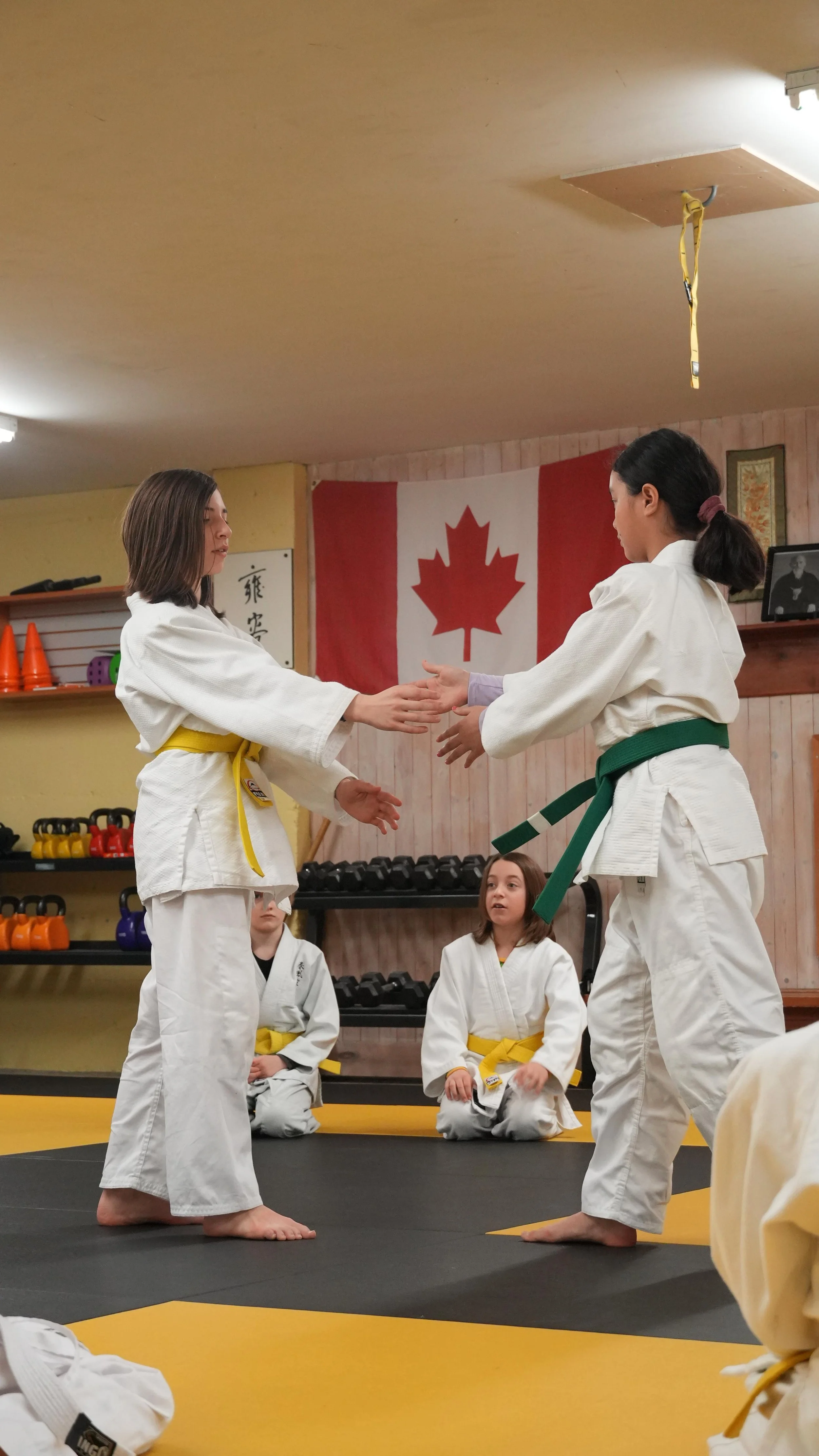 • During class, any student wishing to leave the mat or to practice something other than what the class is practising must first ask the permission of the instructor.
